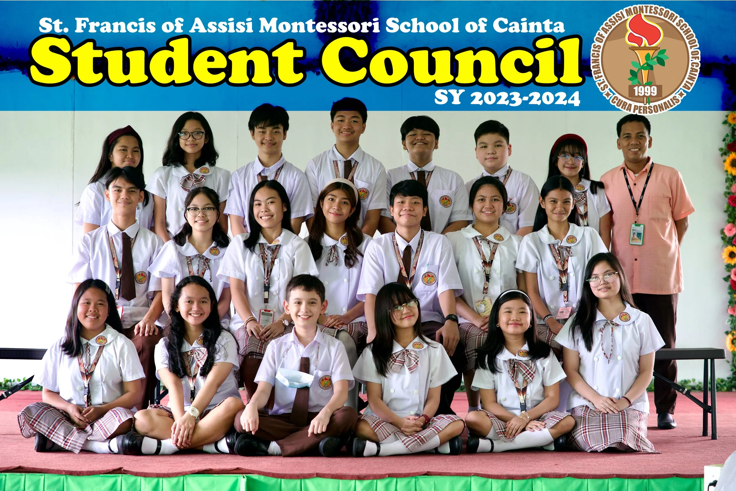 Introducing the Student Council for SY 2023-2024. The Student Council is the highest governing body for both the Elementary and High School Departments. It acts as a liaison between the student body and administration as well as the faculty. Teacher Mario Follero supervises the activities of the council.