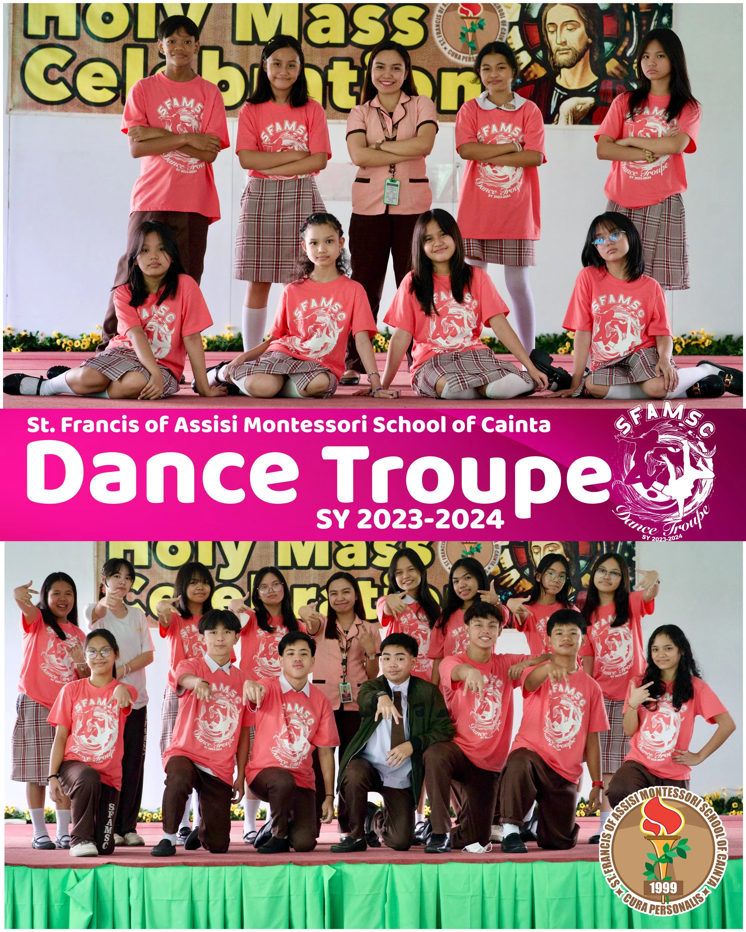 The SFAMSC Dance Troupe aims to boost the confidence of its members through self-expression in dance performances. The Dance Troupe usually performs during various extra-curricular activities, video covers, and competitions outside the school. Teacher Tintin Montero Bapor is the advisor of the SFAMSC Dance Troupe.
